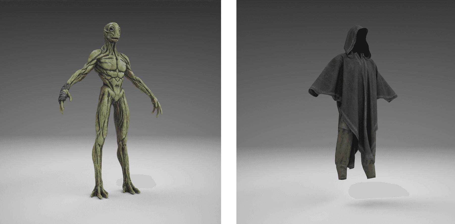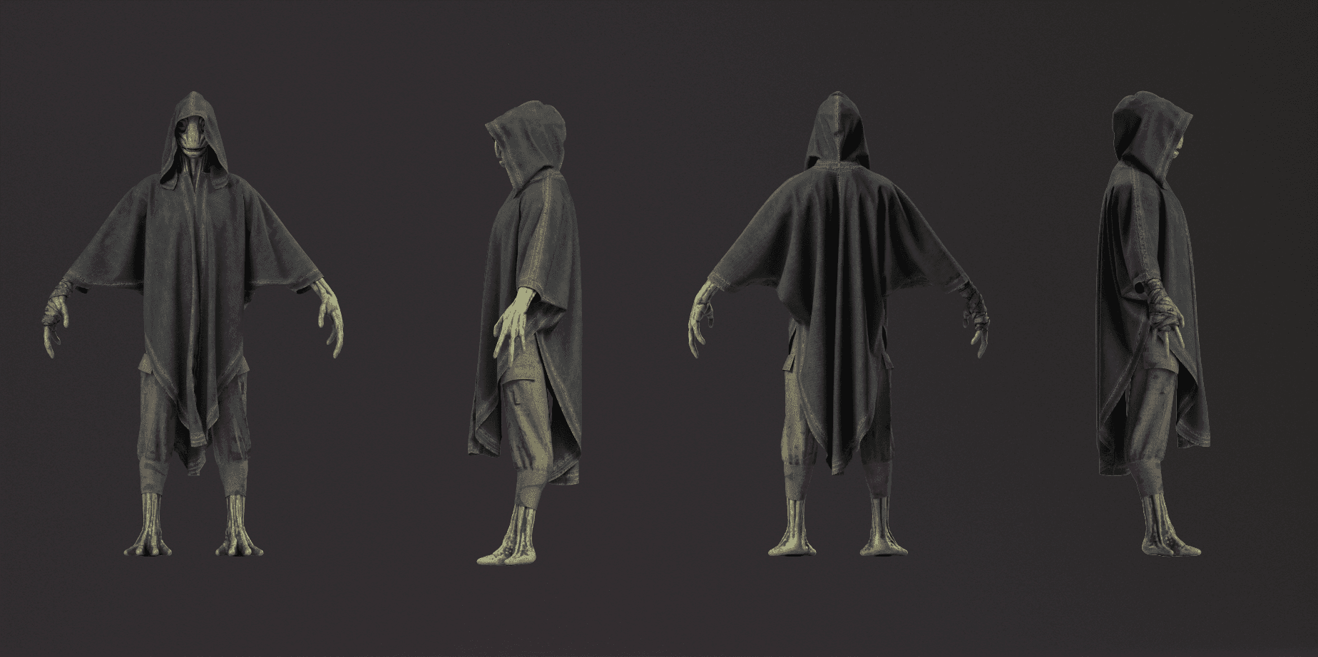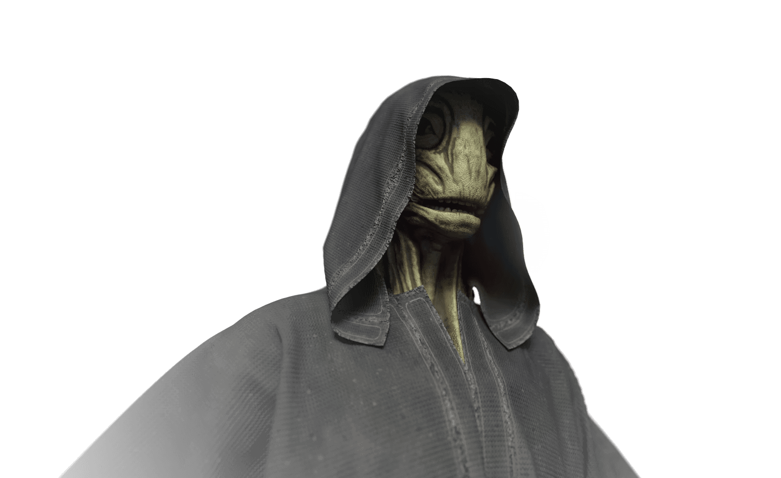 The alien design was concepted in Photoshop, visualized through sculpting in ZBrush, outfitted in Marvelous Designer, prepared in Maya, and textured in Substance Painter.