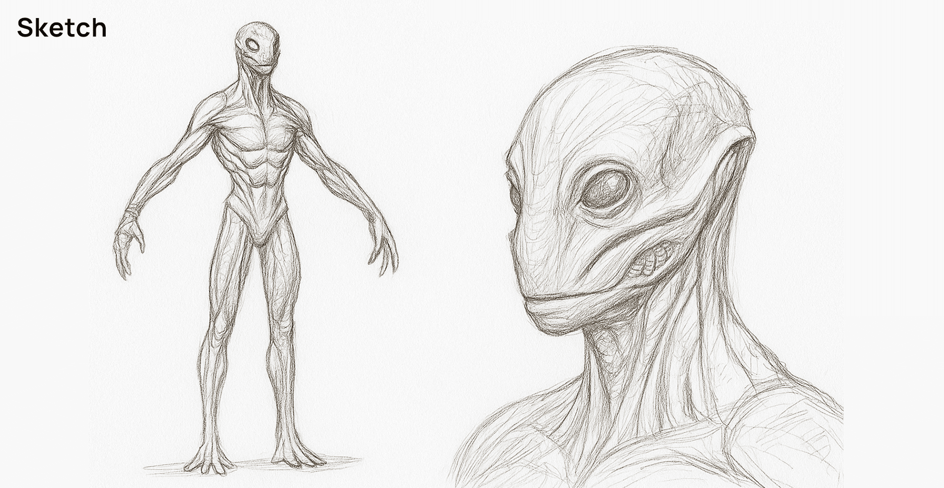 To begin with, I sketched a storyboard outlining the main scenes. I also created concept drawings to define the appearance of the alien creature.